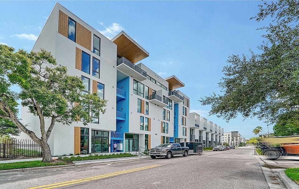 One or more photo(s) has been virtually staged. Brand new construction (never occupied), luxurious condo in the heart of Rosemary District. 2 bedroom, 2 bathroom "loft style" unit is ready for immediate occupancy. Another mesmerizing contemporary design by award-winning architects Halflants + Pichette. This unit has very HIGH CEILINGS going all the way up to floor 2. The patio off of the kitchen and a secured and covered parking space comes with with this unit with direct power for ELECTRIC CAR charging. Gated community (no guard) and locked gated entrances from the sidewalk. Add in a dozen restaurants within a three-block radius, along with art galleries, the Sarasota Ballet, Saturday morning farmers market and Whole Foods and you now have the delights of living in the Rosemary District. Garden living with the excitement of all that downtown living is all about. Elevators and stairwells escort you to your front door. Enjoy gated covered parking with an assigned reserved parking space with wiring for an EV charger. Contemporary cabinetry, quartz countertops, superb appliance packages, solid core doors, porcelain tile floors inside and out and efficient, insulated impact glass make your home a very special place. Fine and casual dining, the theater, the opera, art galleries, world-class shopping and Sarasota Bayfront Park. Just over the John Ringling Bridge to Lido Beach and delightful shopping of St Armands Circle! Call for your private showing today. Buyers and/or Buyers Agent to verify all pertinent information, including room sizes, as they may be approximate. All Association information should be verified with Property Management Company or Association. Information deemed reliable but not guaranteed.