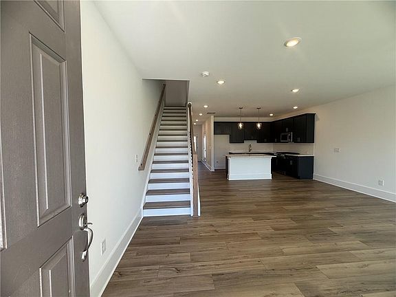 Discover modern living at its finest in the beautifully designed Calliope townhome, offering 1,507 sq. ft. of thoughtfully curated space across two stylish levels. With 3 bedrooms, 2.5 baths, and a rear-entry 1-car garage, this home perfectly blends functionality with high-end design—ideal for entertaining, working from home, or simply relaxing in comfort. The main level welcomes you with an open, sun-filled layout featuring a spacious living area and room for a formal dining setup. At the heart of the home, the gourmet kitchen shines with bold navy 42" cabinets, striking gold hardware, quartz countertops, a crisp white tile backsplash, and a generous kitchen island—perfect for casual dining and entertaining. Hard surface flooring extends throughout the home, including the stairs, leading you to your private upper-level retreat. The primary suite offers a serene escape with a walk-in closet, and a spa-inspired bathroom with dual vanities and a large tiled shower. Two additional bedrooms, located just down the hall from the convenient upstairs laundry room, offer flexibility for a home office, guest room, or personal gym. These rooms share a full bathroom with a tub/shower combo. Finished with neutral EVP flooring and hand-selected designer touches, this townhome offers both style and substance—ready to fit your lifestyle. Situated in the trendy West Midtown district, known for its artisanal vibe, industrial minimalism, top-tier retail, and some of Atlanta’s best restaurants, Park Vue offers the perfect balance of urban convenience and serene living. This sought-after neighborhood is also home to high-tech companies, making it a prime location for both work and leisure. Just steps from Westside Park (recently renamed to honor former Mayor Shirley Franklin), Atlanta's largest greenspace, Park Vue offers exclusive community amenities including a gated entrance, a resort-style pool, a shaded cabana, and a cozy neighborhood fire pit surrounded by Adirondack chairs. This home (unit 219) and will be ready for an October 2025 move-in date. Spend your holiday season in your new home this year! For further details and information, please contact an onsite Community Sales Manager. Please note that renderings are for illustrative purposes, and photos may represent sample products of homes under construction. Actual exterior and interior selections may vary by homesite.