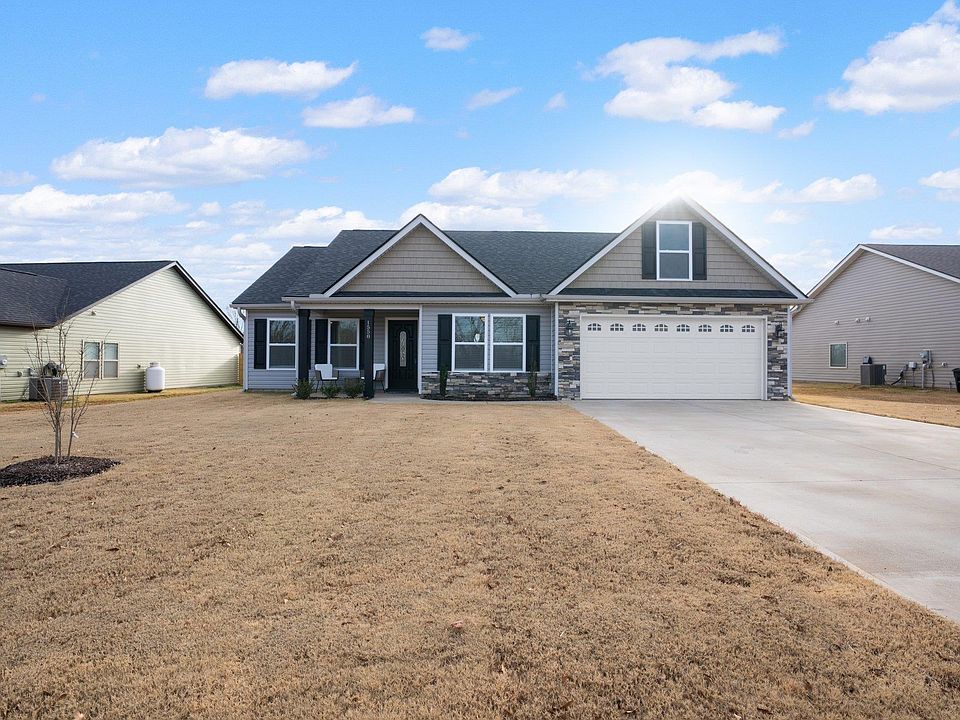 Like new one-owner, open-concept craftsman style home built in 2021 on a nearly one-acre lot close to Lake Blalock! With wonderful curb appeal and a fabulous one-level floorplan, this property offers serene country living with all the conveniences, including access to I-85, close by. A beautiful kitchen with granite countertops, large island with seating, separate pantry and stainless appliances is open to a breakfast area and great room with 10' ceilings and a gas fireplace. So many upgrades, including lovely crown moldings and luxury plank vinyl flooring in the main living areas. A large, private master bedroom off the back of the house features a tray ceiling, bathroom with double vanity and large walk-in closet. Two spacious bedrooms with a shared bathroom can be found off the foyer at the front of the home. And a walk-in laundry room with sink is conveniently located by the entrance from a 2-car attached garage. Don't miss the wonderful covered back porch and separate patio overlooking a huge backyard and fire pit area with breathtaking sunset views. In-ground irrigation covers the front and side yards, as well as part of the backyard. This home is energy efficient and comes with the builder's original 10-year warranty. Restaurants, shopping, schools and Lake Blalock - with a boat launch, fishing pier, walking trails and picnic tables - are all just minutes away. Schedule your showing today!