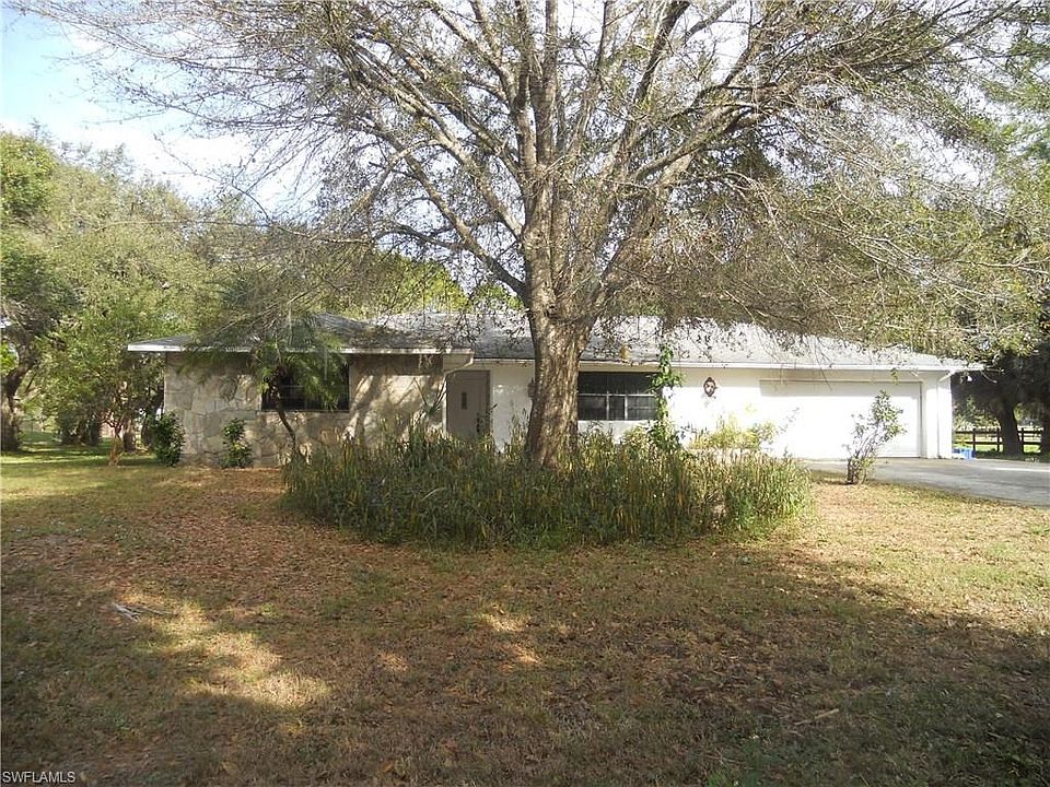 .75 of an acre of property located in desirable Olga/Alva area. Three bedroom, two bath concrete block home. Large kitchen with tile floors and island. Two car garage and paved driveway. Large oak trees on property. Great location close to Olga Mall, Franklin locks, boat ramp, picnic and river.