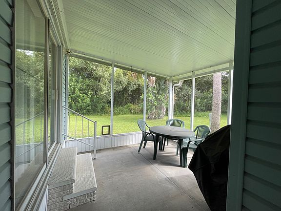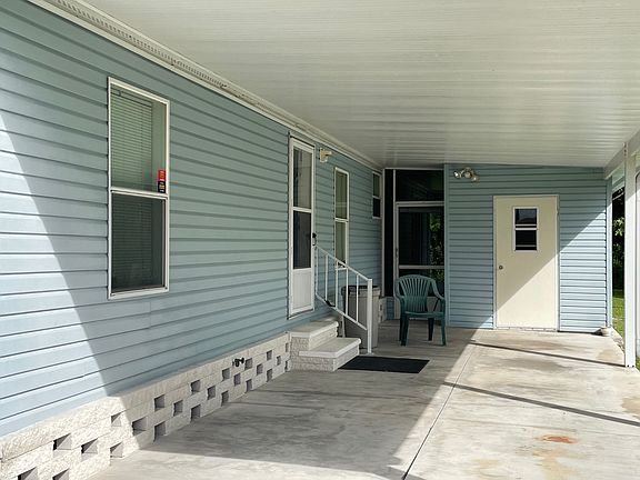 Charming 3 bedroom home in a 55+ age small community. Featuring an open floor plan,combining the living, dining and kitchen area. Carpeting throughout except for the bathrooms and kitchen which are vinyl. The master bedroom has an en suite bathroom with a shower with glass doors. The other two bedrooms share a bath with a tub/ shower. All bedrooms have walk in closets. The washer and dryer are located inside. The a/ c was replaced in 2024. New shingles were replaced in 2020. All appliances are in working order. Sliding glass doors off the kitchen will take you to a screened in lanai. Great views of the wooded backyard. Also there is a shed for storage. Long driveway/ carport offering plenty of parking space. This home is located in a small community, close to shopping, restaurants and entertainment. Start living the Florida dream!,