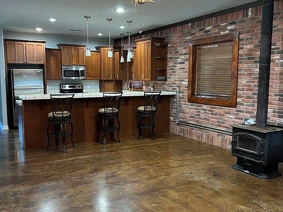 3/10 of a mile from Hickory Creek Park. Great home with a lot of potential for an Air BNB. Big open floor plan with beautiful brick wall accents throughout, custom cabinets, stained concrete floors downstairs, wood floors upstairs with an all wood room off of master bedroom (great office area or closet). A 14x22 foot elevated patio with a full foundation for future expansion. A 30x50 shop with plumbing for bathroom all on a 0.52 acre lot. Beautiful Hickory creek runs on east side of property. An additional 0.48 acre lot could be available for purchase (stream separates property).