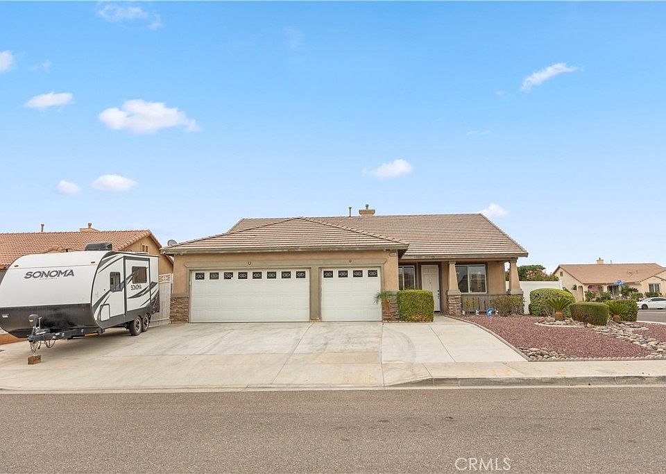 Welcome to this stunning, move-in ready 5 bedroom, 2 bathroom spacious home containing 1,963 square feet, perfectly situated on a beautifully manicured corner lot. The property has good curb appeal with mature landscaping, plenty of Rock, Roses, and Palm Trees, all encompassed by durable vinyl fencing. As you step inside, you are greeted by the Formal Living Room and Dining area, leading to a Functional Kitchen and Great Room that face the backyard. The entire home features beautiful tile floors throughout and all five bedrooms are generously sized. The exterior is completed by a tile roof and a 3-car attached garage, while the private backyard offers custom vinyl patio coverings and fences for comfortable outdoor living. This home is conveniently located with easy access to freeways, local supermarkets, and schools, all within a very serene and appealing surrounding area.