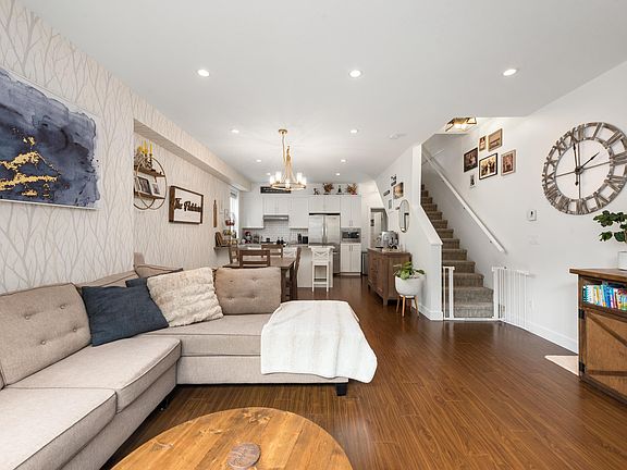 THE WOODS – Stunning END UNIT with serene GREENSPACE VIEWS! Built by GRAMERCY, this distinctive community blends modern design with timeless East Coast charm. Exceptional craftsmanship throughout, featuring 9-ft ceilings, a sleek contemporary kitchen with stainless steel appliances including gas range, quartz countertops, and elegant wide-plank laminate flooring. The BRIGHT & OPEN 3-bedroom plus DEN/OFFICE layout or optional 4th bedroom offers flexible living for any lifestyle. Zoned LIVE/WORK, take advantage of the dedicated studio or office with its own bathroom on the main level. Elevate your evenings on the ROOFTOP PATIO—perfect for entertaining, unwinding, and soaking in the view! Ideally located near shopping, restaurants, and cafés, with quick highway access for easy commuting.