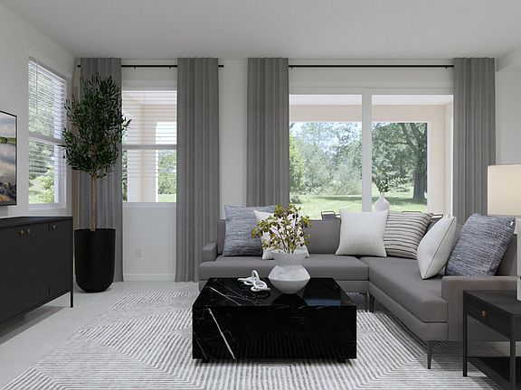 The kitchen, dining nook and Great Room share a convenient and contemporary open floorplan in this single-level home. Homeowners will enjoy a covered patio for effortless indoor-outdoor entertaining. Two secondary bedrooms can be found at the front of the home, while the luxurious owner's suite is located off the Great Room.