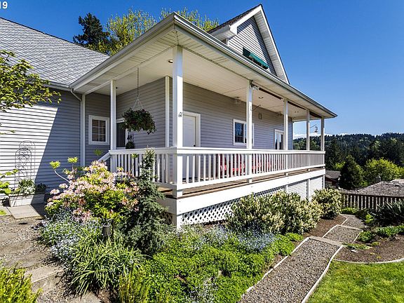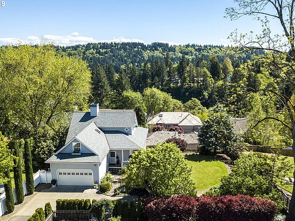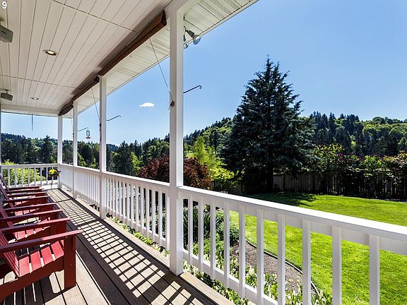 Beautiful custom home on private lot with incredible views from wrap around porch. Great room living on main, wood floors and custom woodwork throughout. Flexible floorplan. Lives as family home, or downstairs can be separate ADU, w/separate kitchen, furnace & hot H20. New 50 year roof and AC. Resort like master suite with fireplace and WI closet. Enjoy the large yard, with great entertaining space. Steps away from Willamette Village