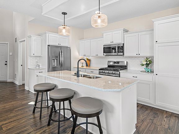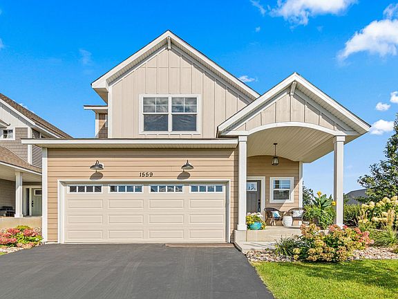 Absolutely stunning 3BD/3BA home on the most premier lot in the neighborhood! Professionally landscaped with a striking stone retaining wall, vibrant perennials, and a spacious yard ideal for outdoor living. The expansive concrete patio is perfect for entertaining and dining alfresco. Inside, this one-of-a-kind floor plan offers main-level living at its best with a luxurious owner’s suite, spa-like bath, open-concept kitchen, dining, and living spaces, plus convenient main-floor laundry. Upstairs features two bedrooms and a full bath, with instant equity potential in the unfinished lower level. High-end upgrades include California Closets, designer window treatments, premium appliances, and meticulous landscaping. This turnkey showstopper shines inside and out!