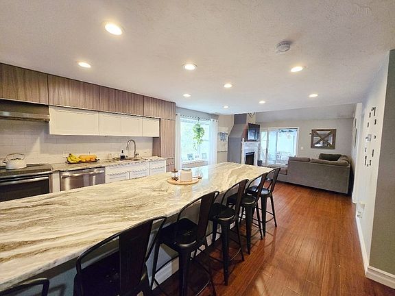 Wood-burning fireplaceWaterfront livingSparkling saltwater poolSpacious loft-style second bedroomTennis courtsBeautifully updated end-unit townhouseModern kitchen