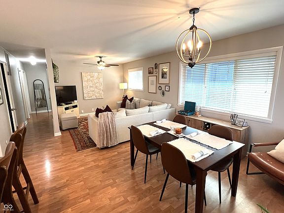Welcome home to your clean and updated ranch in prime Noblesville location. Updated bathrooms w/ white tile walls and newer fixtures & vanities. Light-filled kitchen has white cabinets, recessed lighting, & a subway tile backsplash. New AC and new water heater installed in 2022. New roof in 2022. Newer Jeld Wen energy efficient windows throughout. Plumbing and electrical new in 2013. New exterior paint in 2024. Convenient side door leads to fenced rear yard & cinder block 2-car garage with additional floored attic storage above. Enjoy your evenings on the private concrete patio w/ fire pit & newer cover!