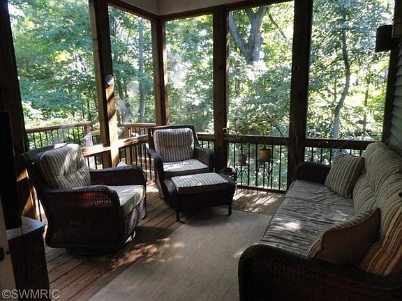 OH MY! is what you will say when you see all this gorgeous home has to offer! This property is breathtaking, with 150 ft frontage on the St. Joseph River. There are woods, open land, & decks galore. At the water's edge is a dock & fire pit. Supreme water & wooded views from almost every room, including screened room creating a relaxing atmosphere. Vaulted ceilings, loads of windows, built-ins, quality throughout this 4BR, 3 full bath beauty. Lower walkout level has theatre room & kitchenette with wet bar, exercise room with mirrors & office. Geothermal heating for efficient comfort. All the extras you would expect, including, hardwood, granite, top of the line appliances, walk in shower, huge master bath & closet with built-ins, guest suite and main floor laundry. Custom built, one owner