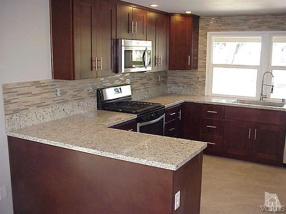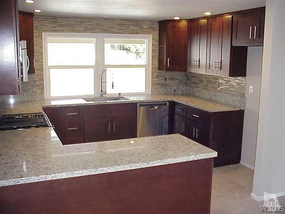 New from top to bottom!! 5 Bedrooms + 2 baths, over 1700 sq ft of living space. Remodeled kitchen with new cabinets, granite counters and new appliances. Eat-in Kitchen and formal dining area. Large living room with vaulted ceilings and fireplace, upgraded baths with new vanities and granite counters. New carpet and ceramic tile flooring throughout. New dual-pane windows and sliders, new aluminum roll up garage door. New Roof, new central heat and A/C and new paint in and out!!!!