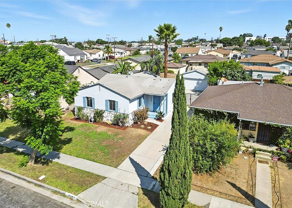 Turnkey and move-in ready, this upgraded Los Angeles residence offers three bedrooms and two baths with the flexibility of a rare fourth primary suite option. A welcoming front lawn and covered porch set the tone, while a long gated driveway leads to a detached two-car garage. The private backyard invites relaxation, barbecues, and gatherings. Inside, a versatile family room with vaulted ceilings and backyard views can be converted into an additional primary suite with its own ensuite-style bath. Throughout the home, beautifully restored original hardwood floors add warmth and character, complemented by interior laundry and a kitchen updated with quartz countertops and a contemporary backsplash. Both bathrooms feature designer finishes — from a herringbone tile surround with brass accents to a sleek vertical stacked tile shower with matte black fixtures. Ideally located minutes from Chester Washington Golf Course, schools, shopping, and dining, with quick access to the 105 freeway and major venues including SoFi Stadium, Intuit Dome, and the Kia Forum. Classic charm, modern upgrades, and flexible living options come together in this distinctive property.