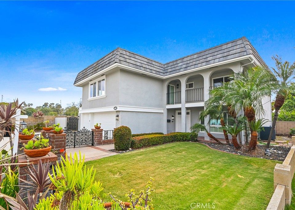 Amazing Opportunity! Located in the beautiful community of Goldenwest Estates, this largest floor plan S&S built home on a 7,070 sqft lot adjacent to the Lake Park McFadden! Enter the wrought iron courtyard to the double door entry with Travertine tile and the sweeping staircase. The living room and dining room with plantation shutters is perfect for entertaining. The large kitchen with Granite counters and wood cabinetry features a large walk in pantry. The kitchen leads to the large family room with brick FP and wet bar. The sliding door opens to the solid covered patio that has light for backyard entertaining. The downstairs powder room is conveniently located for guests. Ascend the sweeping staircase with gorgeous chandelier to the second floor that has 4 large bedrooms, and a dual sink hall bath with shower over the tub. The enormous master suite with another brick fireplace will not disappoint. The dual paned windows looks out to the park and "duck pond". The cedar lined walk in closet, vanity with wood cabinetry, and large walk in shower make it a complete package. Secondary bedrooms have ceiling light fixtures and 3 door mirrored closets. The huge bonus room with balcony and view of the park spans the width of the 3 car garage. Other features include new interior paint, new double entry door, new vinyl flooring and new carpet upstairs, and new LG stove and hood in the kitchen. Walking distance to Golden West College, close to BELLA TERRA, minutes to Freeway 405 and the beach.