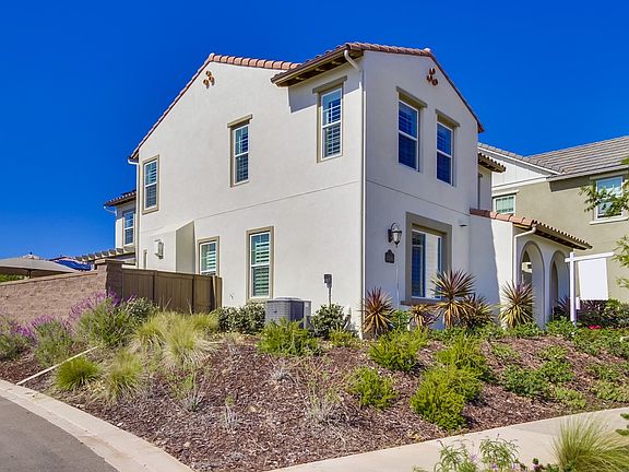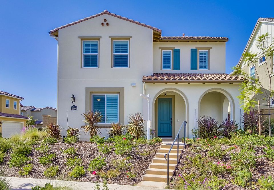 THIS IS THE HOME YOU HAVE BEEN SEARCHING FOR! Don’t pass up this remarkable opportunity to own an over-sized corner lot with canyon views of beautiful Del Sur and Santa Luz. Less than a mile distance to three award winning Poway Unified schools. Del Sur offers 18 miles of hiking trails, 8 private pools, quick access to major freeways, and a new town center with shopping, restaurants, and professional services. Stainless steel appliances with dual convection ovens and five burner gas cook-top. This large 4 bed/3 bath home has designer finishes, granite kitchen counter tops, soft close drawers, rod iron staircase, custom interior/exterior paint, luxurious upgraded carpet, home theater audio system and home surround sound. Walk-in pantry. Large upstairs laundry room with sink, shelving and built-in cabinets. Energy efficient with owned solar panels and tank-less water heater reduce your utility bills. Oversized two car garage which features three custom overhead racks for extra storage and a 240v outlet for fast EV charging. Parking for up to four vehicles. Home automation system with dual thermostat and front door lock control, multiple interior and exterior day/night video cameras convey. Full bed/bath downstairs, large open family room, dining room and kitchen. Master bedroom is spacious with canyon and mountain views. Master bath features designer tile, jetted tub and large walk-in closet. Hunter-Douglas plantation shutters throughout let in the California sunshine. Covered front porch with breathtaking views. Backyard is one of the largest with open panoramic views, Belgard pavers, soft synthetic grass, and covered pergola with ceiling fan. Great for entertaining! Side yard has plenty of additional space for a dog run. Del Sur is a wonderful community with planned events for adults and families throughout the year. This home is truly move-in ready and waiting for its new owners!