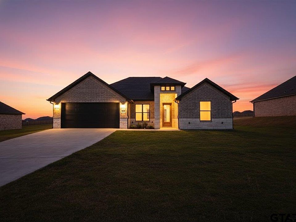 This beautiful new construction home sits on a spacious half-acre lot and showcases striking brick and stone curb appeal that immediately catches the eye. Featuring 1,936 sq ft of thoughtfully designed living space, this home offers 4 bedrooms, 2 baths, and a 2-car garage. The open-concept layout flows seamlessly from the inviting living area—with a cozy gas fireplace—to the bright, modern kitchen complete with a gas cooktop and stylish finishes. The home’s elegant color palette complements its clean design and enhances its natural light throughout. The master retreat includes direct access to the utility room for added convenience—a feature every homeowner will love. With a flat, level lot and a desirable location in one of Lindale’s newest neighborhoods, this home truly checks all the boxes. Schedule your private showing today!