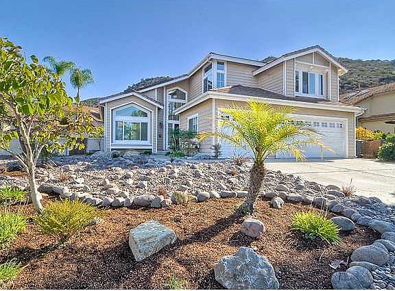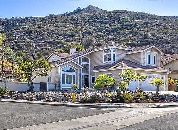 $849,900-$879,900! This two-story home in the highly sought-after neighborhood of Sycamore Creek is situated on a large corner lot big enough for a pool. It features granite kitchen counters, stainless steel appliances, new HVAC unit, vaulted ceilings, & large master suite with walk-in closet. Outdoor amenities include low water landscaping, a park & creek across the street, hiking & biking trails & mountain views. Poway School District & an elementary school in walking distance. No HOA, No Mello Roos! Sycamore Creek is a very family and pet friendly neighborhood that enjoys it’s own holiday parties and events. This corner property has no neighbors in the front or on one side. The vaulted ceilings and large windows provide an abundance of natural lighting and an open, airy feel. The home has a large laundry room with storage cupboards and plenty of room. The oversized tub and walk-in closet in the master bathroom will spoil you. Enjoy the two fireplaces; one in the master suite and one in the family room. Every room has overhead lighting and three rooms have ceiling fans. Lots of space for storage in the three car garage with automatic garage doors!