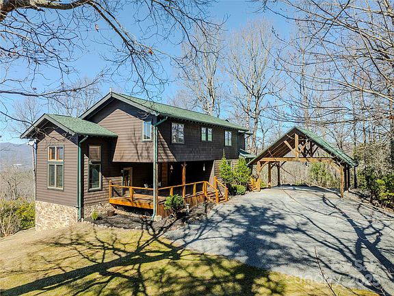 This magnificent mountain top home is a once-in-a-lifetime opportunity to own a custom, luxury home with world-class Blue Ridge Mountain views. Just ten minutes to downtown Brevard, with end-of-the-road privacy, the property has a guest house, a small pond and a large yard. Owner-built by a high-end contractor, every detail of the house speaks to ease of living, quality, and comfort. Huge windows reveal expansive mountain vistas in most of the