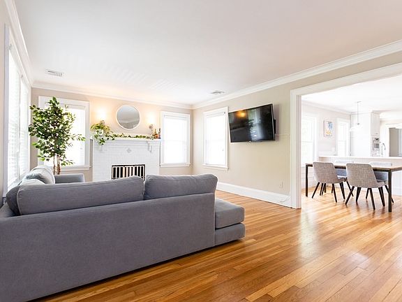 EXCEPTIONAL 2 Family in vibrant Cushing Square area! FIRST FLOOR offers traditional kitchen w/ breakfast nook, formal dining room w/ built-in hutch, pantry, fireplaced living room & front & back covered porches. SECOND FLOOR is beautifully renovated w/ an open floor plan kitchen-dining room w/ quartz countertops, Kitchen Aid appliances, built-in-hutch, pantry, fireplaced living room, generous closet space, laundry in unit, hardwood floors, high ceilings, recessed lighting, crown molding, central air, enclosed front porch & heated back porch. Walk-up attic with expansion potential. Each unit has separate entrance, heating system, & interior access to unfinished basement for storage & gorgeous fenced yard. Home has a 2-car detached garage w/ 4 additional off-street parking spaces. Additional features: newer roof, plumbing, boiler, upgraded electrical service, replaced windows & house was fully insulated. Steps to 73 bus w/ MBTA connection & easy access to major highways.
