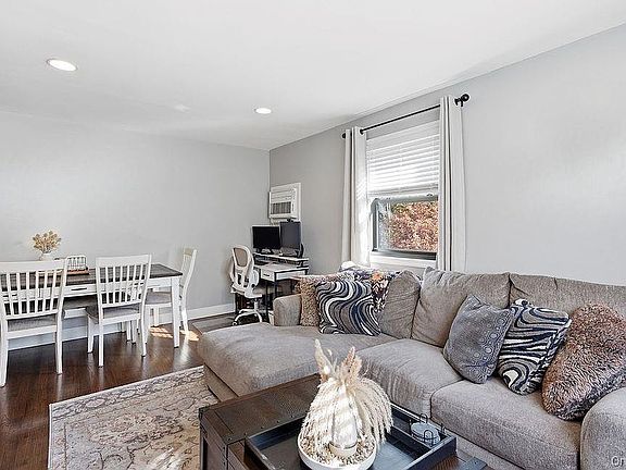 Welcome to this fully renovated one-bedroom garden apartment, ideally situated on the second floor of a quiet and well-maintained complex. This corner unit offers extra privacy and an abundance of natural light, with brand-new windows throughout that create a bright, airy atmosphere. The apartment has been completely redone, featuring a spacious open-concept living and dining area with modern flooring, fresh paint, and updated lighting. The kitchen has been beautifully renovated with new cabinetry, granite countertops, and stainless steel appliances, creating a clean, contemporary space that’s both stylish and functional. The bedroom is generously sized, offering ample closet space and plenty of sunlight. The bathroom has been fully updated with modern fixtures and elegant tile work, giving it a fresh, spa-like feel. Every detail of this apartment has been carefully finished to provide move-in-ready comfort and quality. This well-kept garden complex offers a peaceful, park-like setting while remaining close to shopping, dining, and public transportation. There is a waiting list for parking at just $25 per month, and ample street parking is available nearby. Perfect for those seeking a blend of modern style and low-maintenance living, this corner one-bedroom garden apartment is truly a must-see. Turn the key and move right in. Base Maint: $903.81, AC: $25= $928.81.
