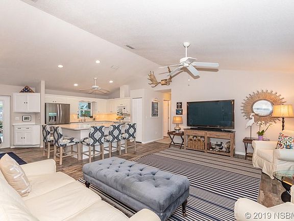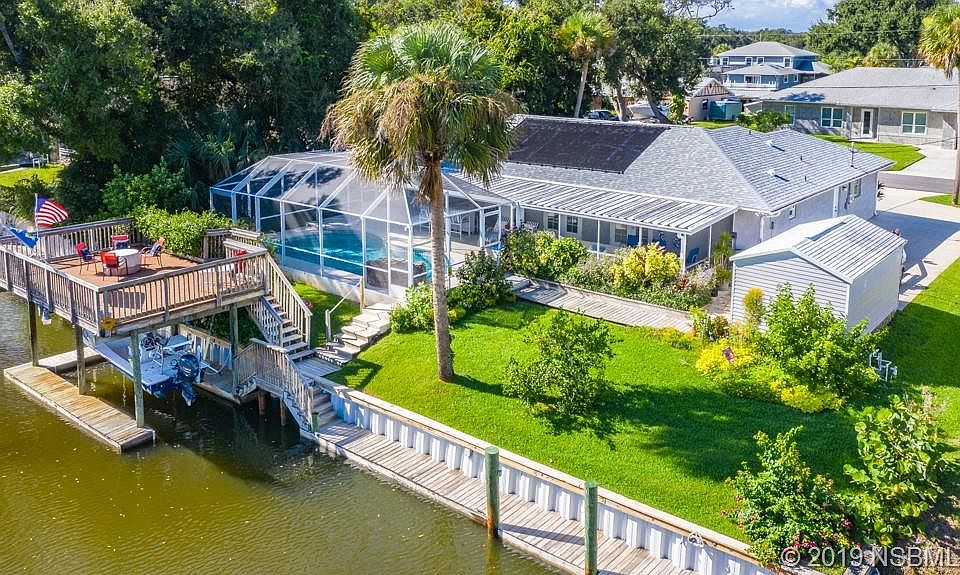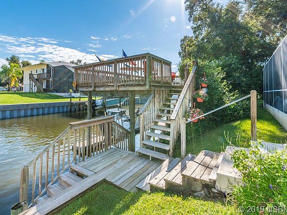 This stunning, immaculate home has it all - this is the one! Come see this spectacular waterfront resort-style pool home with private dock and covered boat lift. Featuring a heated, screened, private pool with waterfall and very large covered lanai with bar - plus a large waterfront deck - you'll have plenty of room for outdoor living, be it entertaining family and friends or relaxing privately, all while surrounded by lush, colorful tropical landscaping (including a certified monarch butterfly garden). The pool is dual heated (solar and electric) and is a salt system, not chlorine. The 100' of waterfront has a seawall in excellent condition, dock, and covered boat lift with the Intracoastal Waterway just at the end of your canal (very near the end of a no-wake zone for added convenience). Remodeled just 4 years ago, this home features 3 bedrooms and 2 bathrooms and a sunny open floor plan with contemporary coastal decor, including wood-look tile, plantation shutters, new hurricane-rated windows and more. In addition to the 2-car garage, the home has a large shed and paved boat/RV parking with 30 amp service and septic hookup. This home is on a lovely, quiet dead-end street, is not in a flood zone and has a termite bond. Roof is brand new in 2019 and AC is 3 years old; has city water and a regularly serviced septic system.