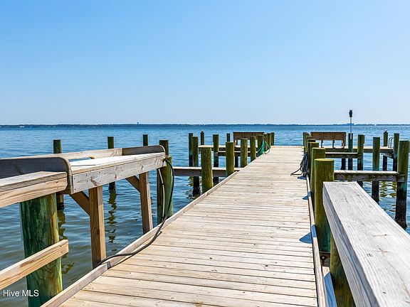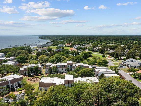 YOUR WATERSIDE RETREAT AWAITS AT OAK BLUFF! Discover this beautiful sound-side condo nestled in one of Carteret County's most scenic communities. Perched on a high bluff framed by stately live oaks and blooming azaleas, Oak Bluff offers privacy, tranquility, and true coastal charm. Relax or entertain on your private patio with peaceful sound and garden views. Inside, natural light fills the open layout, featuring a well-designed kitchen with stainless steel appliances and ample storage. The spacious living and dining areas flow seamlessly to the patio and include a lighted granite topped bar perfect for effortless indoor-outdoor living. Durable laminate wood and tile flooring make upkeep simple, and a convenient half bath serves guests downstairs. Upstairs, two generous bedrooms each feature an en suite bath for comfort and privacy. The primary suite includes a walk-in shower, custom cabinetry, and a walk-in closet accented with decorative lighting and elegant trim. The second suite is also large and spacious. Thoughtful details continue with high-end interior doors, attic storage, and a smart, functional layout. The front service courtyard is uniquely finished with brick tile flooring, a French drain, and a full-width translucent-roof storage closet an owner-designed upgrade and the only non-gravel courtyard in Oak Bluff. A new HVAC system was installed in August 2025 for year-round comfort. Community amenities include a sound front pier and day dock, pool, tennis/pickleball and basketball courts, playground, and gated entry. Boat storage is available across Hwy 24 (first-come, first-served rental), and a public 18-hole golf course awaits just across Hwy 24. Oak Bluff blends coastal beauty, convenience, and low-maintenance living ideal as a primary home, vacation retreat, or investment opportunity.