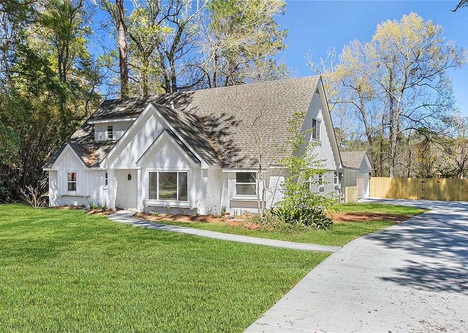 NEW SUBSURFACE DRAINAGE INSTALLED AS OF 8/28 (w/ 3 yr warranty)! **Seller is offering a year of paid FLOOD INSURANCE upfront :) ** Nestled on a half-acre lot in Covington’s desirable Riverwood subdivision, this fully renovated home blends modern luxury with timeless charm. Located in the sought-after Mandeville High School district, it features all-new underground plumbing, a new efficient tankless hot water heater, a brand-new HVAC system, and a 5 year old roof. A new concrete driveway, walkway, and back patio complement the all-brick exterior, along with a two-car garage with a covered breezeway to the back door, and all new fencing. Inside, brand-new vinyl wood plank flooring, modern paint tones, and stylish lighting create a warm ambiance. The sleek new kitchen boasts quartz countertops, stainless steel appliances, a gas range, and a flanking spacious laundry room with a back door to the garage. Ample storage & closets are located throughout the home. The open floorplan boasts a large yet cozy living room with a fireplace, a formal dining with a picture window and a bonus room! The bonus room is a great space for a keeping room, office, playroom, etc! A convenient half bath is located off the main living space. The first-floor primary suite offers a private retreat with an oversized walk-in closet and spa-like en suite featuring dual sinks, a soaking tub, and a custom-tiled shower. Upstairs, three large bedrooms include walk-in closets, with one featuring a private bath and another full bath in the hallway. Enjoy the expansive backyard with a new concrete patio and serene wooded views. Ideally located just minutes from the Causeway, I-12, and Highway 190, this home offers convenience and style. Current termite contract and an assumable flood policy. Don’t miss this incredible opportunity!
