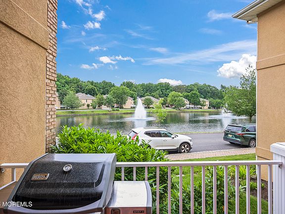 Set against the tranquil backdrop of a sparkling pond with twin fountains, 156 Blue Heron Court enjoys one of the most scenic settings in Holmdel's sought-after Beau Ridge community. A charming paving stone walkway leads to the front door, setting the tone for the thoughtfully updated and lovingly maintained interior that awaits. Step into a home filled with light and warmth—where high ceilings, oversized windows, and detailed moldings create an inviting and elegant atmosphere. Throughout the main level, COREtec luxury vinyl plank flooring offers the look of hardwood with the durability and water resistance ideal for everyday living. The open-concept living and dining rooms provide seamless flow for entertaining, with a gas fireplace featuring an updated mantel and marble surround as ... as a welcoming focal point. Sliding glass doors from the dining area lead to a private deckperfect for sipping cocktails under the stars or enjoying a quiet moment outdoors. The nearby kitchen and family room form the hub of daily life, with quartz countertops, stainless steel appliances, and a peninsula with counter seating. The family room's large window offers peaceful pond views, and a second gas fireplace with a slate surround adds warmth and character. A second deck off this space is just the spot to start your day with morning coffee and a water view. The primary suite enjoys privacy on its own mezzanine level, complete with vaulted ceilings, two walk-in closets, and an en suite bath featuring quartz countertops, a jetted soaking tub, and a separate shower. Just outside the suite, a loft area overlooking the living room offers the perfect space for a reading nook or home office. Upstairs, two additional bedrooms share a second full bath with quartz countertops, while the basement provides generous storage or the potential to finish for added living space. An oversized garage offers room for storage or up to three cars. Beau Ridge residents enjoy access to a clubhouse, pool, tennis and basketball courts, and a playground. With the Middletown train station just over two miles away and the Garden State Parkway only 1.5 miles from your door, this home offers the perfect balance of comfort, convenience, and natural beautyjust minutes from NYC-bound transit, local parks, shopping, and the celebrated Jersey Shore