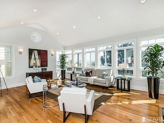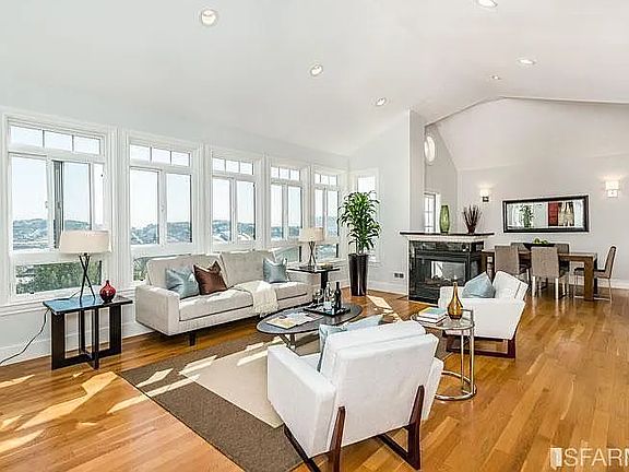 Giant Modern View Home with stunning unobstructed Bay and Mt Diablo views and a superb floor plan designed for the modern lifestyle! Located on a quiet cul-de-sac near top of Bernal Hill and Precita Park, and a short hop to Hwy 101/280 and 22nd St CalTrain! Extra wide lot allows for an incredibly wide, large and open living/dining room & kitchen, accented by soaring vaulted ceilings, floor to ceiling windows, 8 foot doors and gas fired fireplace! Flooded w natural light, views, walk-out Zen-like patio and incredible rooftop deck. 2 Masters w jetted tubs and steam showers, laundry room and impressive Kit w professional grade appliances and direct access to the backyard!