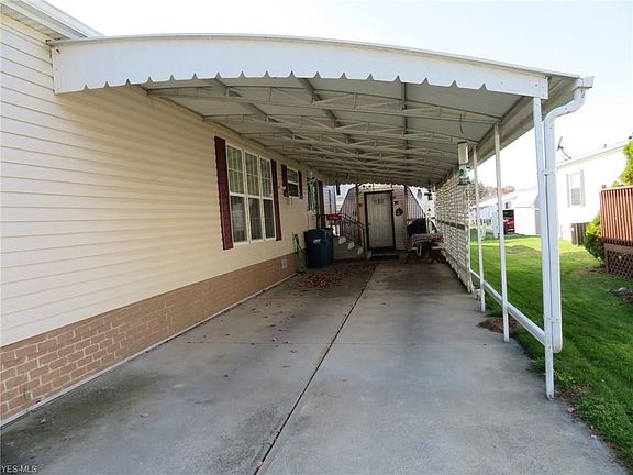 This Mobile Home has an attached 2 car deep Carport which allows you to conveniently enter the home through a sliding glass door into the spacious eat-in-kitchen area that has ample amounts of cabinets, counter space and a Brkfst bar. The kitchen is open to a more formal dining area as well as a nice size living room with a vaulted ceiling and lots of brightness coming in from the windows. The Master Suite is on the opposite side of the house from the other two bedrooms, and has its own private bathroom with a soaking tub, a stand alone shower, a double sink vanity & 2 walk-in closets. The other two bedrooms are decent size, and share a second full bathroom. The laundry room has a full size Washer & Dryer, a sanitary tub and some extra storage space. The Furnace was replaced in 2013, and the AC in 2016. There is also a 10x12 shed for yard equipment &/or if you need extra storage space.