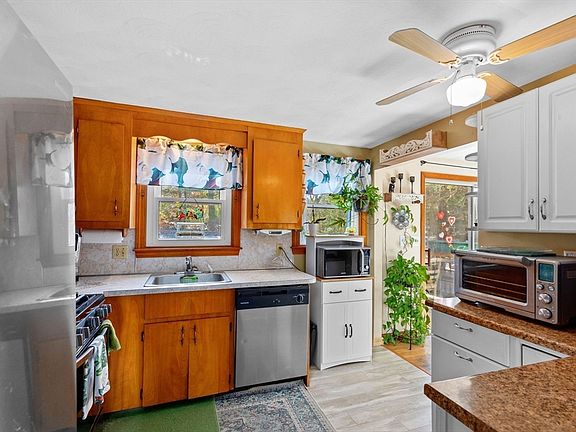 Priced to Sell! This home has a lot to offer and has great potential. Home currently has carpet in the hallway and 2 good sized bedrooms on the main floor with hard wood floors underneath which are featured in the living room and dining room. Working wood burning fireplace in the living room. Kitchen feature s/s appliances. Slider off the dining room leads to large deck (2024) over looking the 18X36 inground pool. Large wooded lot provides lots of privacy. New pump -2024 and the pool liner -2016. Down stairs features another bedroom and bonus room/office/den which has it's own entrance. Completely remodeled full bathroom w/handicap features installed 2023. New water heater installed-2019. Main level windows replaced in 2024, downstairs in 2012. Large window in living room replaced in 2010. Pull down attic offers more storage options along with the 1 car garage. Such a great West Plymouth location, close to highways, shopping, schools and more. Come take a look.