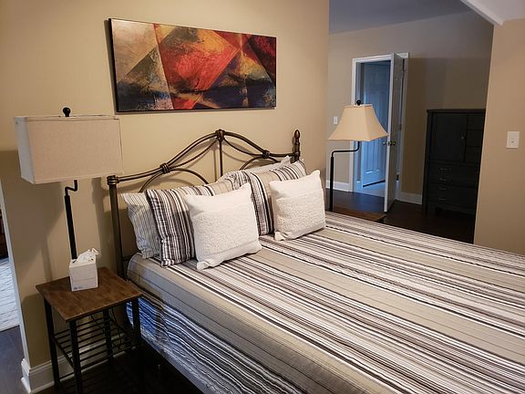 This one bedroom studio apartment has a full kitchen, queen bed, living area, TV, Internet, full bathroom, and garage parking space. The apartment is a private room above a detached garage and is a quiet retreat on Lake Oconee. The location is close to great restaurants as well as recreational activities to pursue on Lake Oconee including fishing tours, jet ski or boat rentals, and public beach areas.