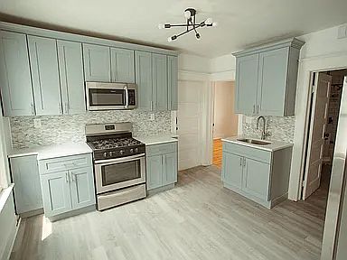 Fully remodeled kitchen with new cabinets, counter tops, sink, plumbing, and stainless appliances
