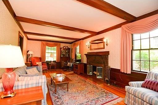 - Liv Dscrp: Fireplace, Flooring - Hardwood, Ceiling - Beamed, Wainscoting