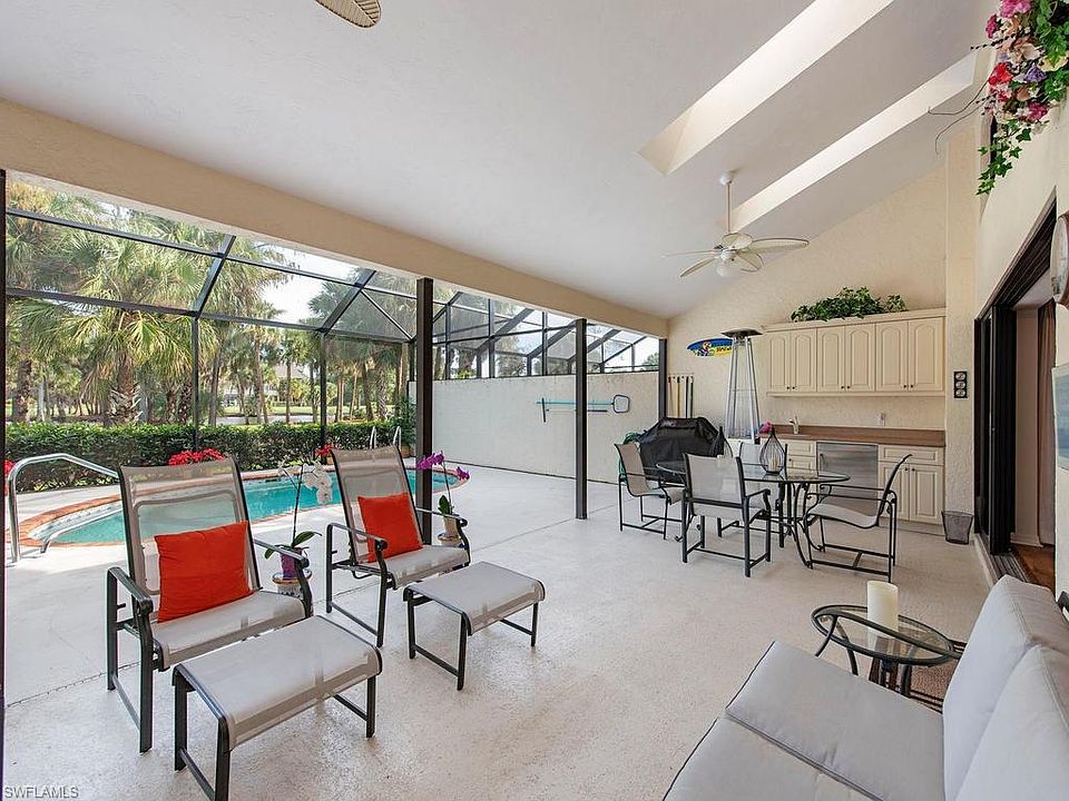 H.15410 - Can't decide between a golf or water view? Why not have both with this charming villa in the unique golf community at Eagle Creek? This home comes with the option of a golf or social membership. Relax with your morning coffee as you watch the activity on the 3rd tee. After an exhilarating day of golf, prepare yourself a beverage at either your indoor or outdoor bar and soak away stress in the oversized spa. This home features a large master suite with his and hers walk-in closets, dual vanities, soaking tub and large step in shower, along with an upper level and a lower level guest room, each with attached private full bath. Eagle Creek is a warm and friendly member owned golf and tennis community with only 456 residences, featuring a championship, walk-able, golf course and 7 har tru tennis courts. Located perfectly between the sandy beaches of Naples and Marco Island.