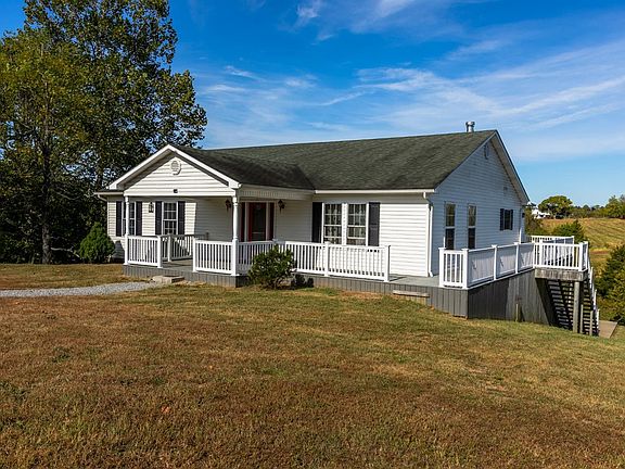 BACK ON MARKET!!! If you love an open floor plan....THIS IS YOUR HOME !! Huge great room that allows the entire family to be together! The living room, dining, kitchen and sunroom are all open for the entire family enjoyment. Kitchen has Bosch appliances, including a gas range in the spacious island. Hardwood and tile runs the entire main floor. Two nice sized bedrooms with their own private baths and utility room on main floor. Huge decks right off both sides of the sunroom and master bedrooms with great views of the rolling hills as well as the pond. Poured concrete walk out basement with one additional bedroom and bath with the option of a second bedroom or office. Two sets of french doors lead out to the patios and a screened in porch. This property has 46 surveyed acres with fencing that runs three sides of the boundaries. Pasture, woods and roads make this the perfect place for horses, cattle and ATV enjoyment!! Buyers need to be pre-approved.
