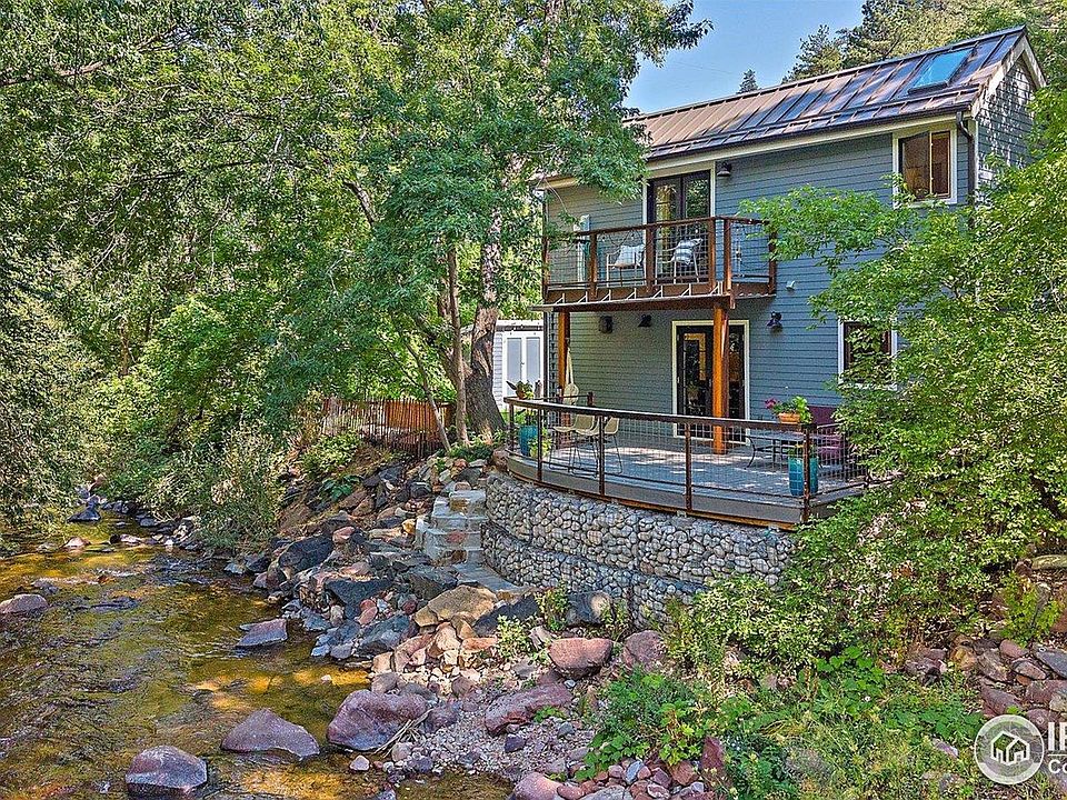 Just minutes from Boulder, this Eldorado Springs retreat offers the perfect balance of mountain living and modern comfort. Perched just above South Boulder Creek, the home enjoys the rare luxury of natural creekside sounds that carry throughout the property, creating a calming backdrop for everyday life.Taken down to the studs and fully rebuilt in 2017, the home showcases thoughtful design and quality finishes throughout. The main level features an open floor plan where the kitchen, dining, and living areas flow seamlessly together, ideal for both everyday living and entertaining. The chef's kitchen is outfitted with butcher block countertops and KitchenAid appliances, while radiant floor heating brings year-round comfort.Step outside to an expansive deck overlooking the creek, perfect for hosting gatherings or simply relaxing as you listen to the water below. Additional highlights include irrigated raised garden beds, a drought-tolerant low-mow lawn, polished concrete outdoor bar seating, a new metal roof from 2017, and a reverse osmosis water filtration system.Upstairs, vaulted ceilings and skylights flood the home with natural light, enhancing the sense of openness and connection to the outdoors. Eldorado Canyon State Park is just down the road with world-renowned climbing, hiking, and biking, along with the historic Eldorado Springs pool that is uniquely fed by refreshing natural spring water.