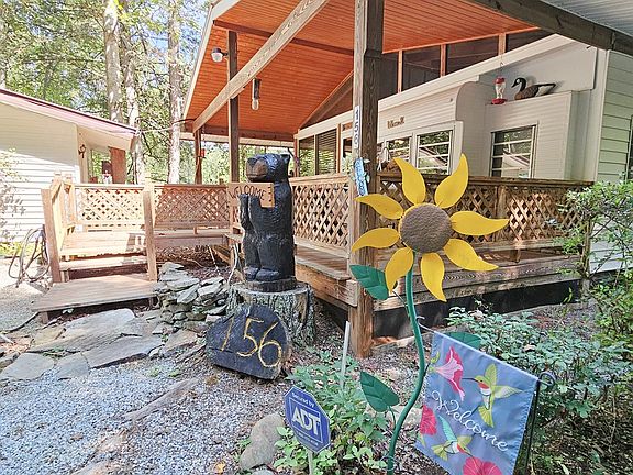 Charming Mountain Getaway in 55+ Seasonal Community Welcome to your affordable summer retreat in the beautiful Western NC mountains! Located in a 55+ park open from April to November, this delightful home began as a camper and has been thoughtfully expanded into a cozy, cottage-style haven. Inside, you'll find a spacious living area that serves as a den, workspace, or hobby room, along with an attached laundry room and workshop for added convenience. The expanded primary bedroom and bath provide extra comfort and space.Step outside to a charming front porch and an expansive deck leading to a separate guest quarters—complete with a large bedroom, full bath, and closet, perfect for visitors. A second deck offers the ideal spot for grilling, a fire pit, or entertaining. Additional features include: Detached carport, Large fenced gravel parking area, double lot for added space and beautiful rock work and landscaping. Being sold fully furnished—just move right in! This adorable home is "cute as a button" and ready for you to start making mountain memories. Don't miss this unique opportunity for a peaceful seasonal lifestyle!
