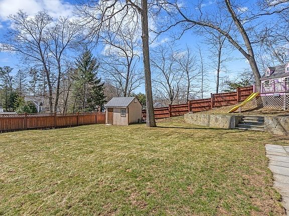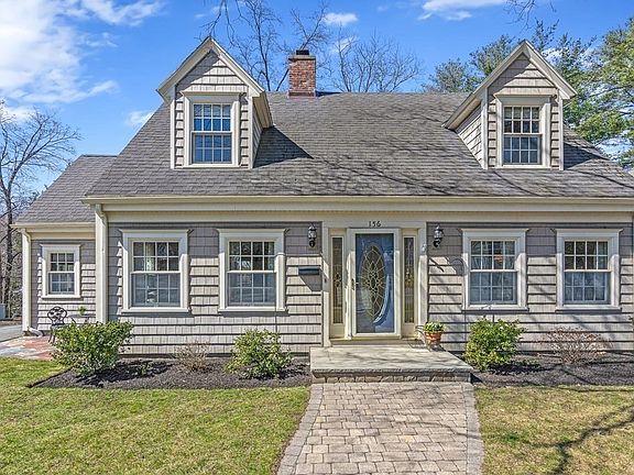 Adorable 3 bed 1.5 updated bath Cape situated on a fabulous corner lot in close proximity to the Fells trails & Winchester hospital with easy access to highways! This charming home offers a formal dining room plus living room w/ wood burning fireplace that flows nicely into a cozy family room/sun room w/stone floors. The sunny updated kitchen offers beautiful bay windows w/views of the oversized backyard w/ a large bluestone patio; first floor is complete w/ a half bath.The second floor offers 3 bedrooms & full hall bath, including a spacious primary bedroom with an oversized walk-in closet. The lower level/ finished basement offers an additional family room & laundry room/gym w/ full door out to the fabulous yard w/ a custom built kids play house.This home has a new hot water heater, low maintenance vinyl shingles, newer windows and newer roof. Easy living, move right in & enjoy this sweet home in nice location connected to Sawmill / Sunset Rd neighborhood w/great expansion potential!