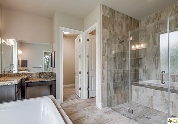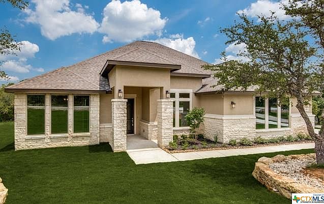 ***New Construction set for completion end of 2020*** Exterior of home features stone/stucco combination, large covered patio, sits on 1 acre+ lot and plenty of trees in the Canyon Lake area! GRAND entry invites into this spacious & open floor plan featuring 10ft ceilings with crown molding and 8ft. doors throughout. Master bedroom features large walking shower with separate tub, separate vanities, and walk in closet! Mudroom and utility room lead into kitchen and feature custom cabinetry, granite counters, tile backsplash, and so much more! ***Photos 1-19 are of a similar floorplan that has been completed***