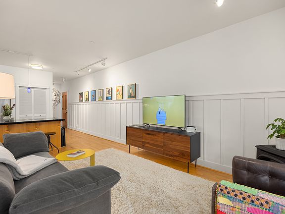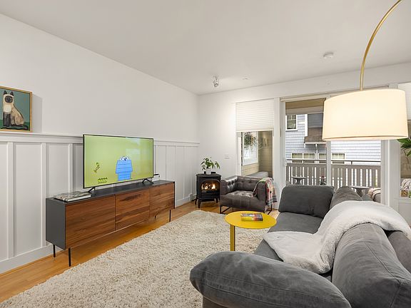 Convenience, Security, Serenity! Beautiful Second-Floor Madrone Village home with no shared walls! Easy access via secure elevator from the parking garage to the front door. Two bedrooms include a spacious primary suite with a large walk-in closet, travertine double sink vanity, shower, and tub. The second bedroom is served by a full bath. Maple floors blend with the maple built-in entertainment center and kitchen cabinets. The kitchen features granite tile counters, a dual fuel propane range, side-by-side fridge, stainless double sink, and dishwasher. Enjoy the covered balcony, a free-standing propane fireplace, and a private garage storage closet. Stroll to restaurants, markets, bakeries, Waterfront Park, the Marina and the Seattle Ferry!