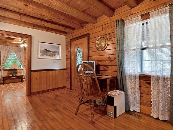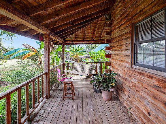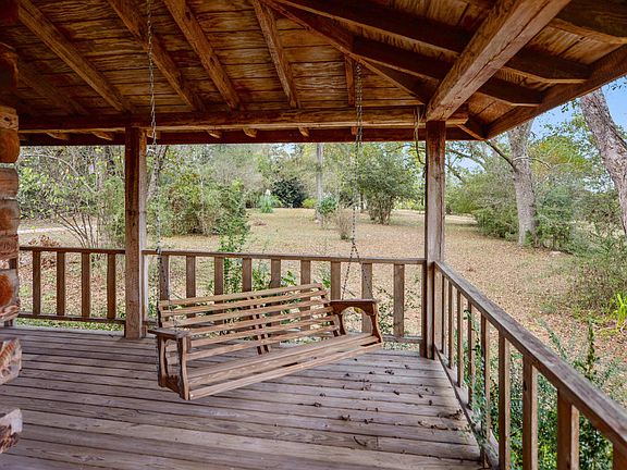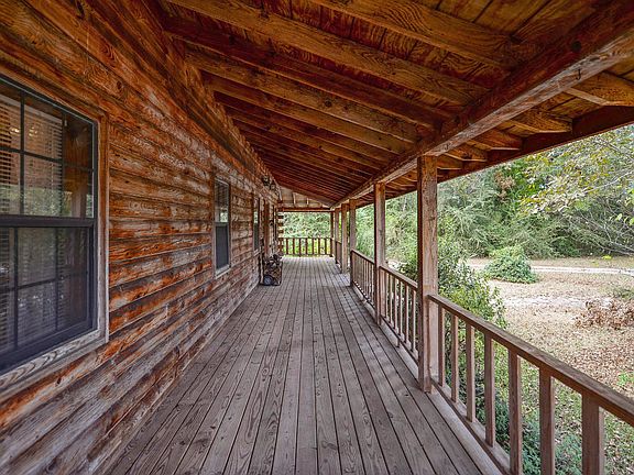 Authentic log cabin with wrap around porch and 10 +/- acres. Beautifully landscaped with pecan and fruit trees, 2 carports, workshop with a loft, 4 slant stalls for equipment. A greenhouse with electricity and water, and 2 horse stall. Close to Mobile and Lucedale.