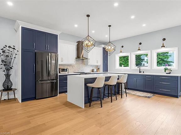 From morning walks along the beach to boutique shopping and dining in downtown Ridgeway, this custom bungalow offers the perfect balance of comfort, style, and a vibrant lifestyle in one of Niagara’s most sought-after communities. With nearly 1,700 sq ft of main floor living on an oversized 49 ft x 159 ft lot, the home exudes sophistication with soaring 10-ft ceilings, pot lighting throughout, engineered hardwood floors, and striking wood-slat feature walls accented by ambient raindrop lighting. At the heart of the home, the kitchen blends beauty and function with two-tone cabinetry, crown molding, a quartz waterfall island, sleek black stainless steel appliances, and ample storage, a space equally ideal for entertaining or everyday living. The primary suite features double closets and a stylish 4-piece ensuite with a double-sink vanity, while a second 3-piece bathroom offers modern convenience with built-in Bluetooth audio. Step outside to your private, fully fenced backyard, beautifully landscaped and complete with a covered awning, perfect for relaxing afternoons or hosting summer gatherings. Additional highlights include a double-car garage with built-in storage, direct shaft garage doors, and Bluetooth entry, along with an air purifier and portable tri-fuel generator for peace of mind. The full unfinished basement adds an additional 1,571 sq ft of potential living space, roughed-in for plumbing and ready for your vision. Just minutes from Crystal Beach, Bay Beach Club, Buffalo Canoe Club, Point Abino Conservation Area, and the charming shops and restaurants of Crystal Beach and historic downtown Ridgeway, this home combines exceptional design with an unbeatable location. For those seeking a serene retreat without giving up elegance, comfort, or convenience, this property presents a rare opportunity to enjoy the very best of Niagara.