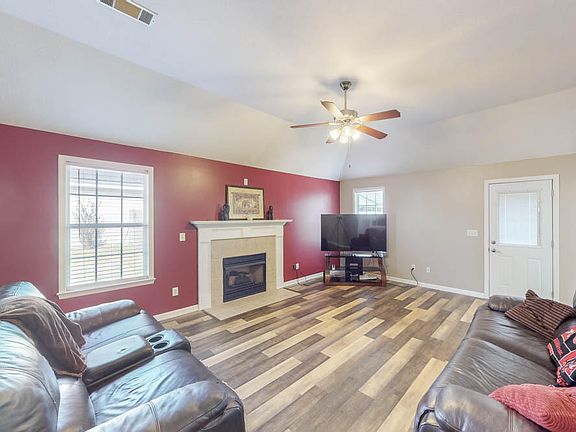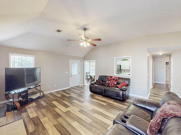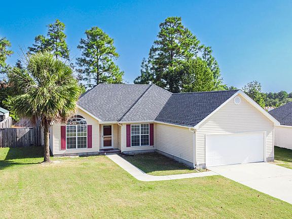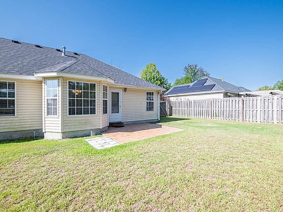 Welcome to this inviting 3 bedroom 2 bathroom home on a nice level lot! A charming storm door greets you into a foyer adorned with beautiful new LVP flooring that flows gracefully into the inviting living room, halls, and bedrooms! The living room is a true sanctuary, featuring a warm gas fireplace and high ceilings that create a bright, airy ambiance—perfect for both relaxation and entertaining! Just off the living room, an elegant office or formal dining room awaits, complete with French glass doors, a vaulted ceiling, stylish chair rail, and exquisite slate tile flooring! The heart of this home is the delightful kitchen, designed for both functionality and style! It boasts a spacious pantry, a range, a built-in microwave, and a lovely tiled backsplash and ceramic tile flooring! Enjoy morning coffee in the charming breakfast room, where a bay window fills the space with sunlight and warmth! Retreat to the owner's suite, featuring a graceful tray ceiling and a ceiling fan! The en-suite bathroom is complete with a double sink vanity, a separate shower, a relaxing soaking tub, a private water closet, and a generous walk-in closet! Spacious spare bedrooms, each with ceiling fans, provide a perfect haven for loved ones or guests, conveniently located near a full bathroom and laundry room! The outdoor patio overlooks a fenced backyard, creating an ideal space for gatherings or quiet evenings under the stars! With updates including a newer roof and HVAC system, plus a front and back sprinkler system for easy maintenance, this home is both beautiful and functional! Plus, it qualifies for 100% financing! Don't miss the chance to make this property your own with easy access to SRS, Fort Eisenhower, Bridgestone, I-20 and so much more!