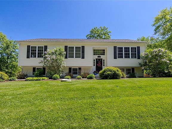 Welcome Home to this Oversized Raised Ranch for sale in desirable North Smithfield. The larger than average footprint of this home allows for a more spacious living area where you can easily host events or catch up on much needed rest in one of the 3 noticeably bigger bedrooms. This home is only 6yrs young, with plenty of life remaining on all of the mechanical systems, and ready for you to grow your family and many fond memories. The kitchen features granite counters and an eat in island and all 3 full bathrooms have granite as well. The property also includes fingerprint resistant slate finish energy star rated kitchen appliances and GE front load washer and dryer in the laundry room. Last but certainly not least is the peacefully handcrafted landscaping that features matured plantings, cut mulch beds and a restful backyard patio sitting area where you can enjoy the warmth of an evening fire or relax while you listen to the melody of the songbirds that visit the birdfeeder. Set on a corner lot, fenced property line, 3acres of nature preserved Town Conservation walking trails across the street and an unbuildable wooded lot to your left, this property has much to offer!