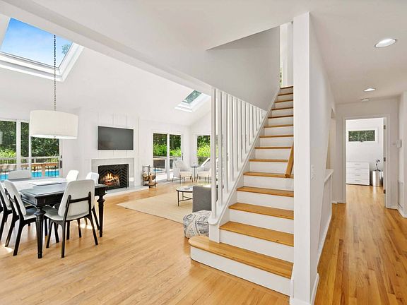 Light-filled Sagaponack estate on 1.56 private acres, recently upgraded with a finished lower level and boasting a heated pool. Easy luxury living awaits on 2,750 +/- sq. ft. of space with 4 bedrooms and 4 baths, plus a full floor renovation, new HVAC, and new pool heater/equipment. Interiors beam with light across gorgeous hardwood floors, while multiple sliding glass doors bring the outside in. Open living areas include a 3-exposure living room with tall ceilings and fireplace, a dining area with glass doors to the deck and pool area, both fenced and a kitchen with island seating and stainless appliances. All bedrooms are well-sized and accommodating, including the ensuite primary suite with a glass shower and marble vanity. As a bonus, there is a large additional den, and a separate office area. The lower level is ready for year-round enjoyment with added living space to suit your needs. Enjoy the heated pool, barbecue, entertain, or dine al fresco on the deck. Additional amenities include a putting green, outdoor shower, and gated yard. Located minutes from ocean beaches, Sag Harbor, Bridgehampton, and Wainscott.