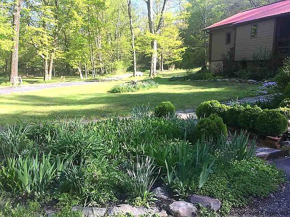Calling all lovers of beautiful gardens!! Located on a very quiet no-line road, this home is only minutes from the village of Stone Ridge in the township of Marbletown. Walk to the most loved farmstand: Davenport's! This amazing 5.25-acre property is host to a privately sited ranch home with select modern sensibilities bringing it closer to today's vision of perfection. Bountiful delights include a private in-ground pool, separate artist's studio and an enclosed organic garden for veggies, herbs and flowers. Attached is a greenhouse that doubles as a source of passive solar. The masonry heater fireplace is from a Canadian company, Tempcast... super-efficiency here. Walls have been removed to offer an open floor plan. The walk-out, full basement is partially finished and has its own heat zone. There are three usable rooms for creative outlets and workspace. The interior doors upstairs have been replaced with heavy oak doors form an old school building. When you live here through all seasons you will never be disappointed by the kaleidoscopic palette of the gardens. The plantings have been carefully selected to provide a continuous show of bloom throughout the growing season. Property abutts Rondout-Espous Land Conservation!