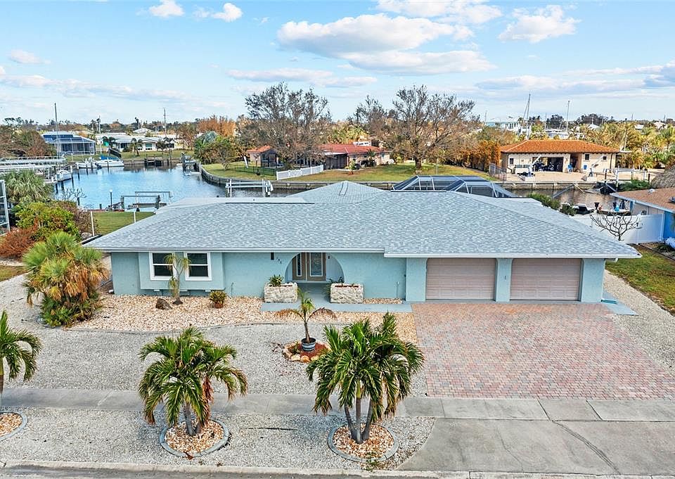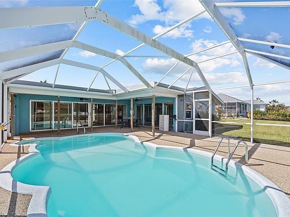 BUYER FINANCING FELL THRU! PRICE REDUCED! Boater’s dream in Port Charlotte with sailboat access in mere minutes to Charlotte Harbor leading to the Gulf of Mexico! Spacious 3 bedroom, 3 bath, 2-car garage waterfront pool home on oversized lot with 100’ of waterfrontage, deep water access, new 10,000 lb. boat lift, concrete seawall and new Trex dock with water and 50-amp electric. Open floor plan offers over 2,500 sf of living area, expansive living room with high ceilings and large slider to lanai, kitchen with an abundance of counterspace and cabinetry, stainless appliances plus breakfast bar overlooking dining room with wall of sliders. Generous primary suite with private bath plus two additional bedrooms and separate full bath provide plenty of room for family and guests. Large indoor laundry room has extra space for storage or craft area. Outdoor entertaining area features covered lanai, screened heated fiberglass saltwater pool new in 2022 and overlooks wide canal views. Additional seller upgrades include new roof, hurricane impact windows and sliders plus gravel side pad for storing your RV or boat. NO HOA! Carpet was removed from living room and 2 bedrooms. Flooring choice is new owners and property is priced accordingly. Great location minutes from Port Charlotte Beach Park, a quick boat ride to new Sunseeker Resort, 20 minutes to Punta Gorda airport and close to restaurants, shopping, schools, golf and downtown historic Punta Gorda with community events and entertainment plus easy access to SWFL gulf beaches. Don’t miss this opportunity! Schedule your private showing today!