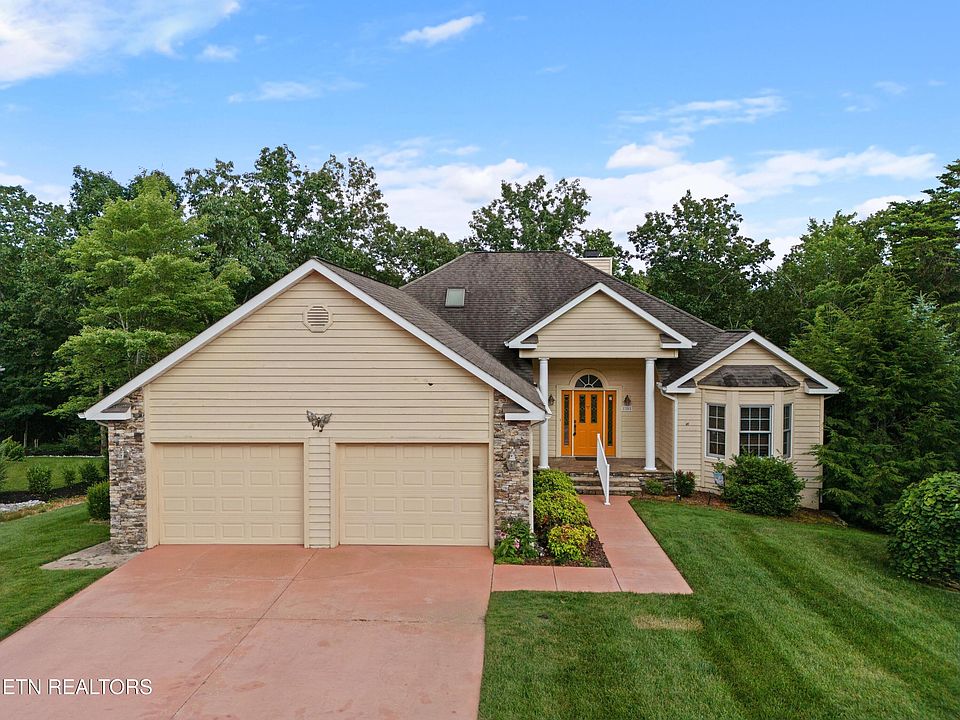 As you enter the home you're welcomed by Cathedral ceilings, and expanded wooded view ensuring privacy and comfort. The open layout seamlessly connects the living, dining, and kitchen areas, creating a perfect space for entertaining and relaxation. The kitchen features beautiful granite countertops, providing both style and functionality. While the gas fireplace offers warmth and ambiance for cozy evenings. This well though out floorplan built by Fairfield Homes and is a split plan with a large primary bedroom, his-and-hers closets, and a spa-like bathroom for your ultimate retreat. The opposing side of the home hosts the 2 additional bedrooms, a full bath, den or office space and a 3 seasons room. The expansive open back porch can be accessed by the primary, the living space, and the sun room. All of this and more is available for your viewing pleasure. Make your appointment to view it today. Located in the desirable Stonehenge Subdivision in the Fairfield Glade community where you'll enjoy access to 5 golf courses, indoor/outdoor pickleball, 20+ miles of walking trails, 11 lakes and more. Buyer to verify all information before making an informed offer. A one time additional payment of $5,000. will be collected at closing and payed to Fairfield Glade Community Club for The Amenity Reserve Fee.