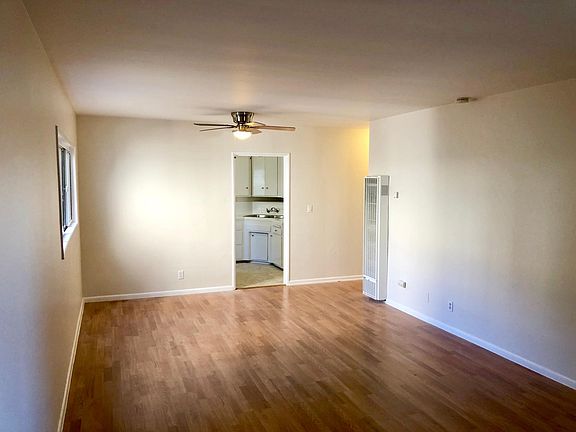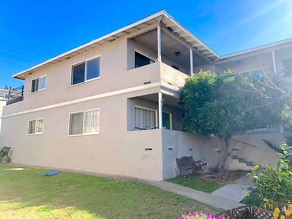 Fantastic unit just 1 block from the beach! Laminate flooring throughout. Extra cabinet space added in the kitchen. Brand new custom blinds to be installed before move-in. Large semi-private patio space shared with only 1 other unit! Laundry on-site. 1 private garage + 2 tandem parking spots. No smoking, small pet OK. Owner pays water & trash