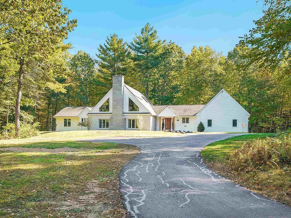 Nestled in the picturesque & historic town of Newfields- this exceptional custom post-and-beam contemporary offers the perfect blend of modern comfort, timeless craftsmanship, & serene natural surroundings. Set privately above the road on 8 wooded acres, w/a winding driveway ensuring complete seclusion, property abuts 43 acres of Nature Conservancy land -a sanctuary of abundant wildlife & unspoiled beauty. Step inside & experience unmatched quality of this thoughtfully designed 3/4 bedroom home. Geothermal heating & cooling systems, radiant floor heat in the great room, complemented by propane furnace & striking black granite wood-burning fireplace. 3 bedrooms, 3.5 bathrooms, a sun-filled Great Room w/cathedral ceilings & stone fireplace. Kitchen offers custom cherry cabinetry, granite counters, cathedral ceiling, eat-in area open to formal dining room. Primary Suite features deep soaking tub, bidet, large walk-in cedar closet. 2 more Bedrooms-each w/access full bathroom. 2nd floor offers a room perfect for office, den,or studio. Floors of black granite, Carrera marble, Brazilian cherry, & maple hardwoods. Walk-out basement w/ wine room, secure vault storage room w/poured concrete ceiling. 2-car garage. New oversized back deck. Exterior showcases all Red Cedar siding & trim, dramatic 6” full-bed granite stone façade accenting central great room. Inside, soaring cathedral ceilings, expansive windows, &carefully curated finishes create a bright & welcoming atmosphere. See List